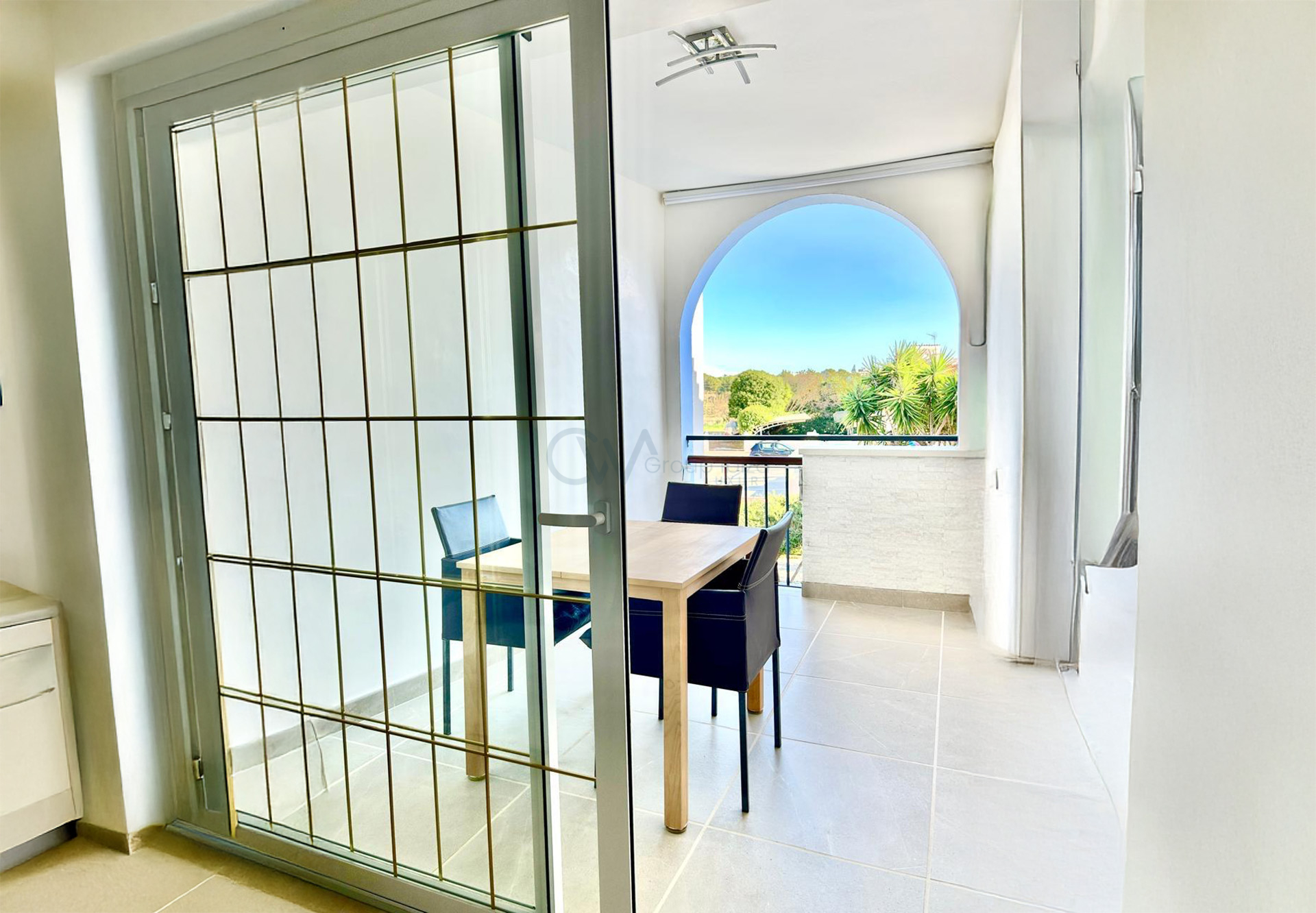 The apartment features a bright and well distributed living space with plenty of natural light. It includes one comfortable bedroom and one full bathroom. The interior is in excellent condition and ready to move into immediately, with quality finishes throughout. Air conditioning ensures year-round comfort, while recently updated windows enhance insulation and overall living quality.