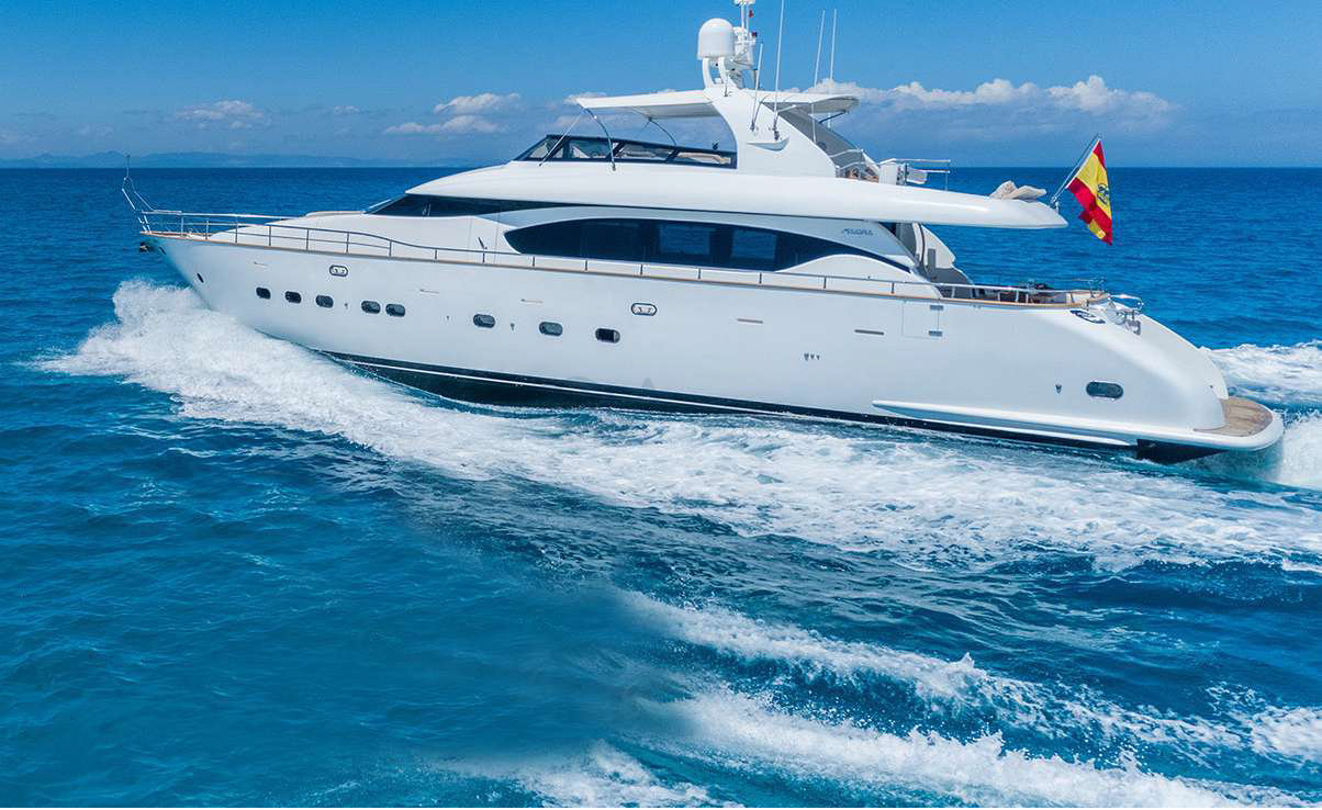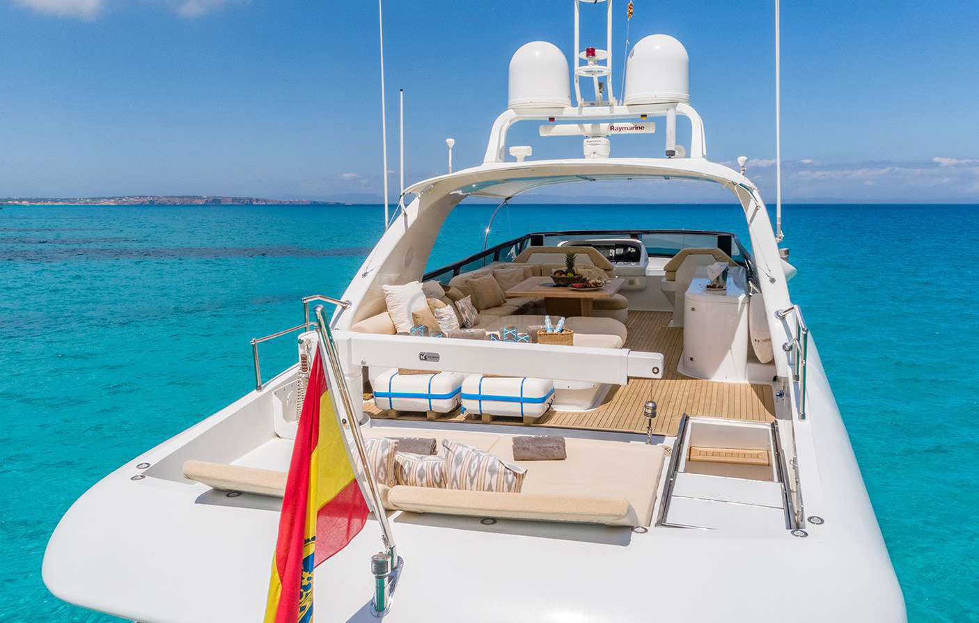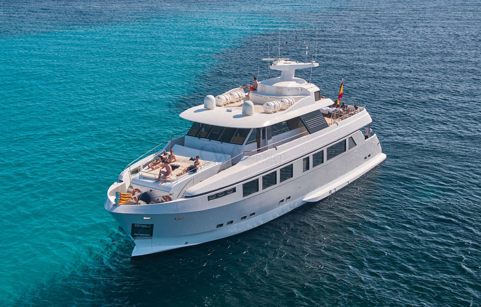 Motor yachts are the classic Ibiza option. They’re comfortable, fast, and usually come with a full crew that handles everything. A well-kept 15-meter yacht can take you to Formentera in under an hour, let you enjoy lunch at anchor, and still bring you back in time for sunset in San Antonio or Marina Botafoch. Prices vary depending on the model and extras, but expect roughly €3,000–€10,000 per day.