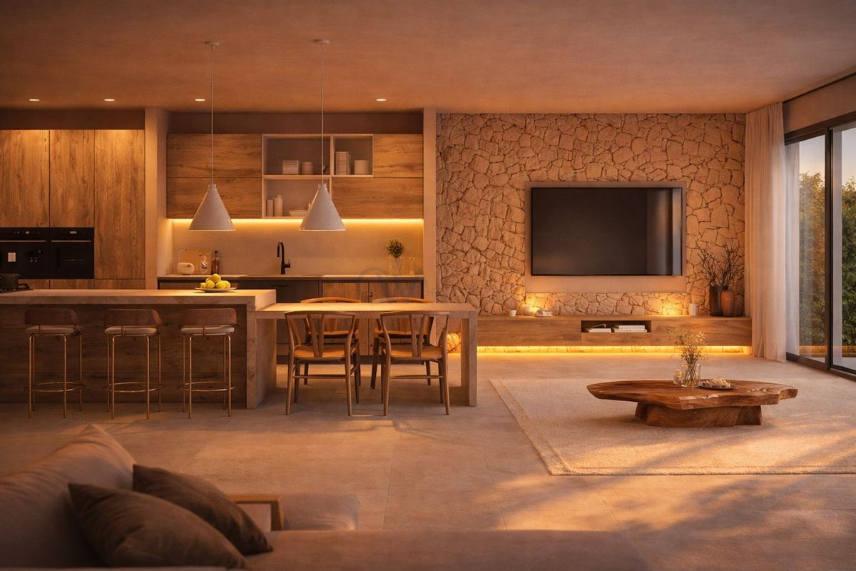 Jede Villa spiegelt eine harmonische Mischung aus traditioneller ibizenkischer Architektur und modernem Design wider und ist durchweg hochwertig ausgestattet. Die Immobilien verfügen über drei großzügige Schlafzimmer, zwei Badezimmer und ein zusätzliches Gäste-WC. Ein heller, offener Wohnbereich mit einer voll ausgestatteten Küche schafft eine nahtlose Verbindung zwischen Komfort im Innenbereich und Leben im Freien – ideal sowohl für den Alltag als auch für gesellige Anlässe.