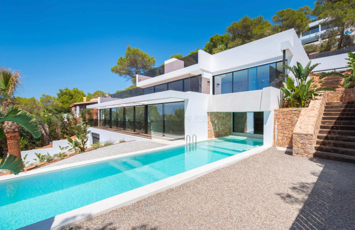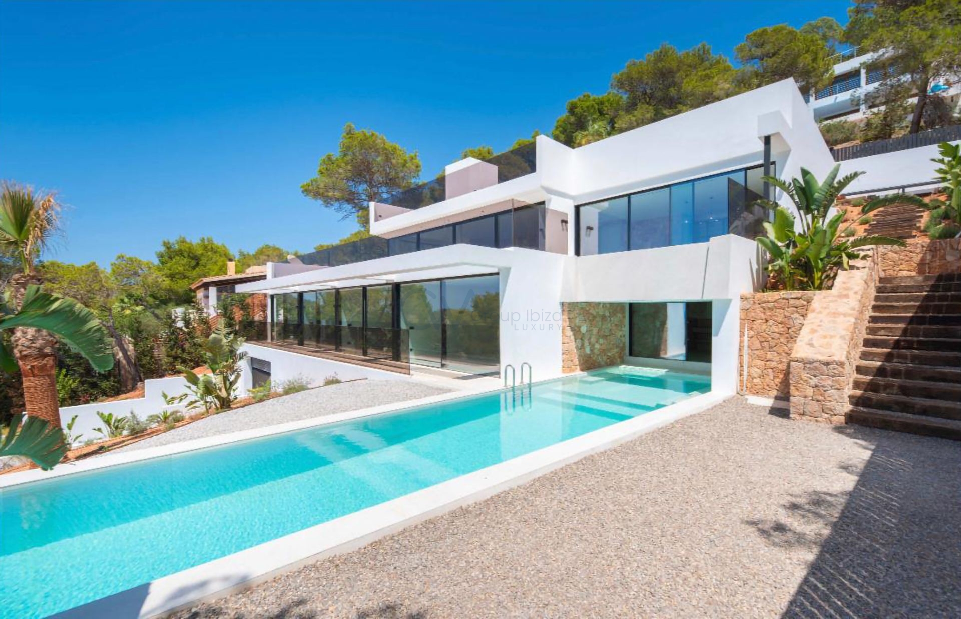 Ubicada en una amplia parcela de 955 mยฒ, la propiedad ofrece impresionantes vistas al mar Mediterrรกneo y fรกcil acceso a las playas de Cala Salada y Cala Saladetta. Disfrute de la combinaciรณn perfecta de lujo y comodidad, con los servicios de San Antonio a solo minutos, incluyendo restaurantes, tiendas y una vibrante vida nocturna.