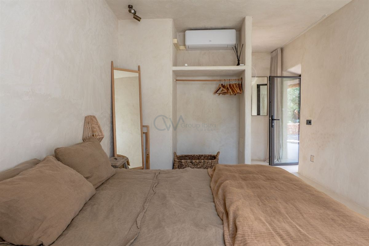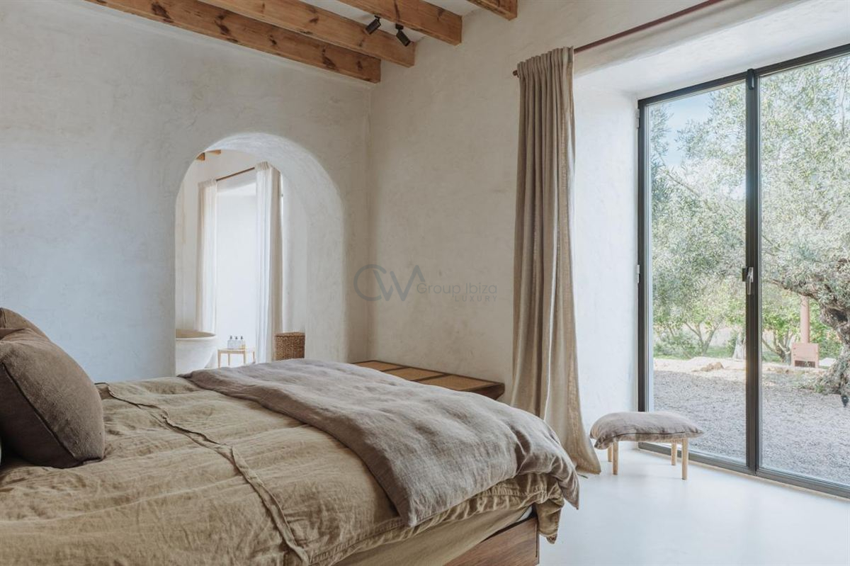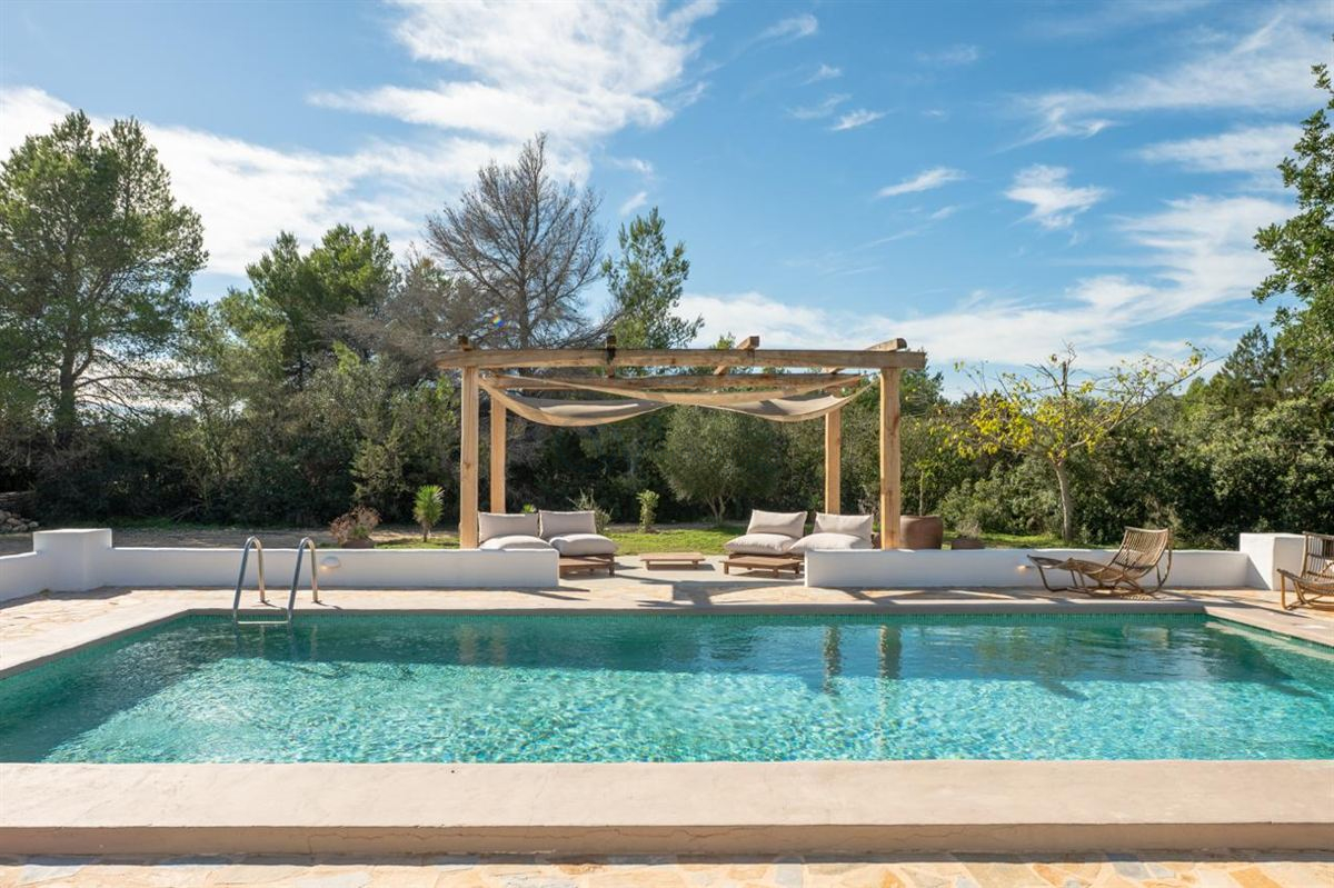 The main residence spans 257 mยฒ and blends classic Ibiza charm with contemporary living standards. Bright interiors, natural finishes, and open-plan spaces create an inviting atmosphere throughout. The home features generous living and dining areas, a modern kitchen, five bedrooms, and several terraces that seamlessly connect to the garden and pool.