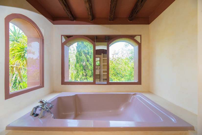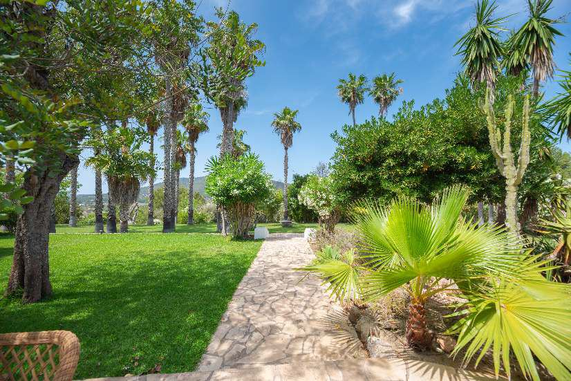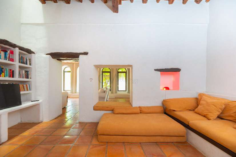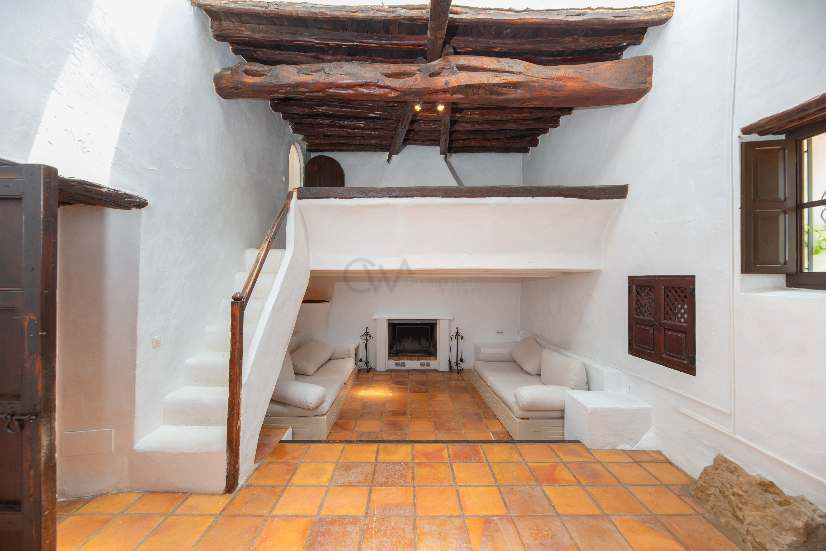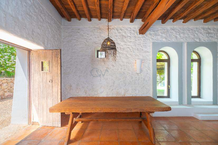 This spectacular Ibicenco-style finca is set in the peaceful natural surroundings of Morna Valley, close to San Carlos. Offering breathtaking panoramic views over the lush landscape, the property combines traditional charm with modern comfort. Its generous 15,000 m² plot features Mediterranean gardens with palm trees, ancient olive trees, a private well, and beautifully maintained outdoor areas ideal for relaxation.