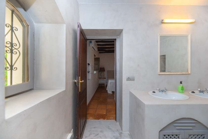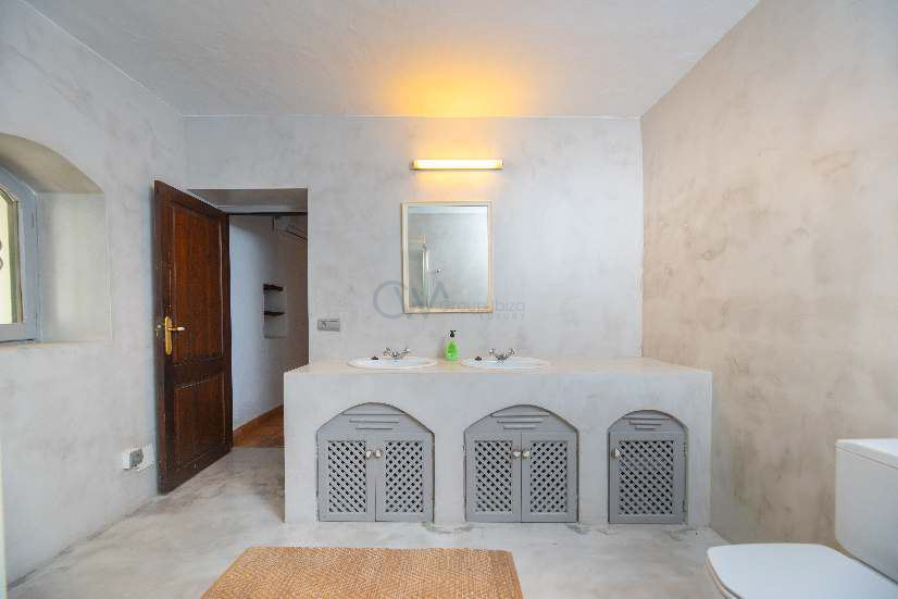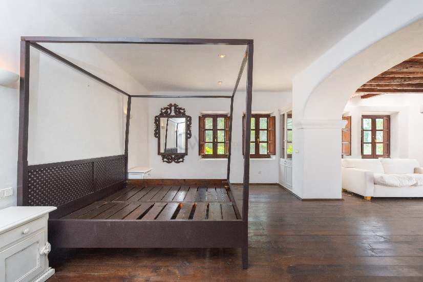 The property also includes an attached guest house with two bedrooms, two bathrooms, a living room, and an open-plan kitchen with a dining area—ideal for guests or holiday rentals. Additional storage rooms of 21 m² and 17 m² provide extra convenience. With its prime location, serene atmosphere, and generous layout, this finca is a unique opportunity for those seeking a tranquil home or a valuable investment in Ibiza.