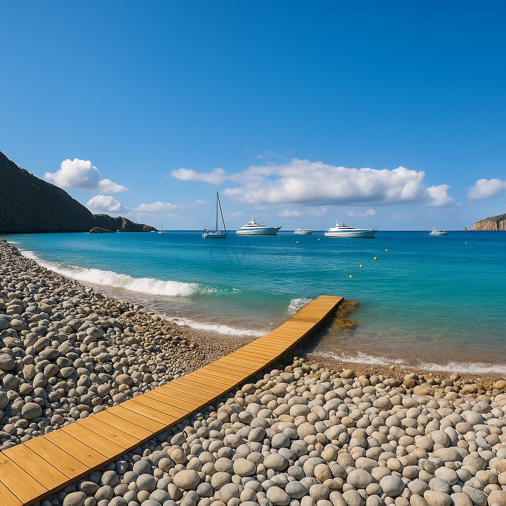 La plupart de ces clubs de plage offrent également un service de navette pour yachts — les clients peuvent être récupérés directement à bord ou recevoir leurs plats et boissons livrés sur leur pont. Ce niveau de service fait de Cala Jondal une référence du luxe méditerranéen.