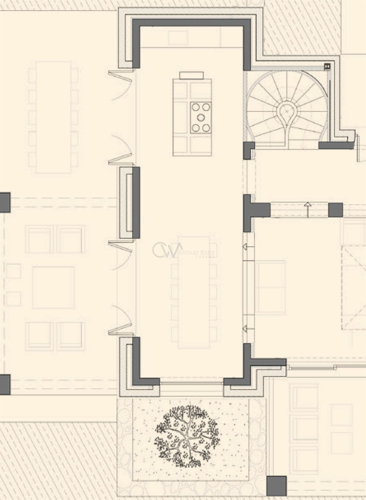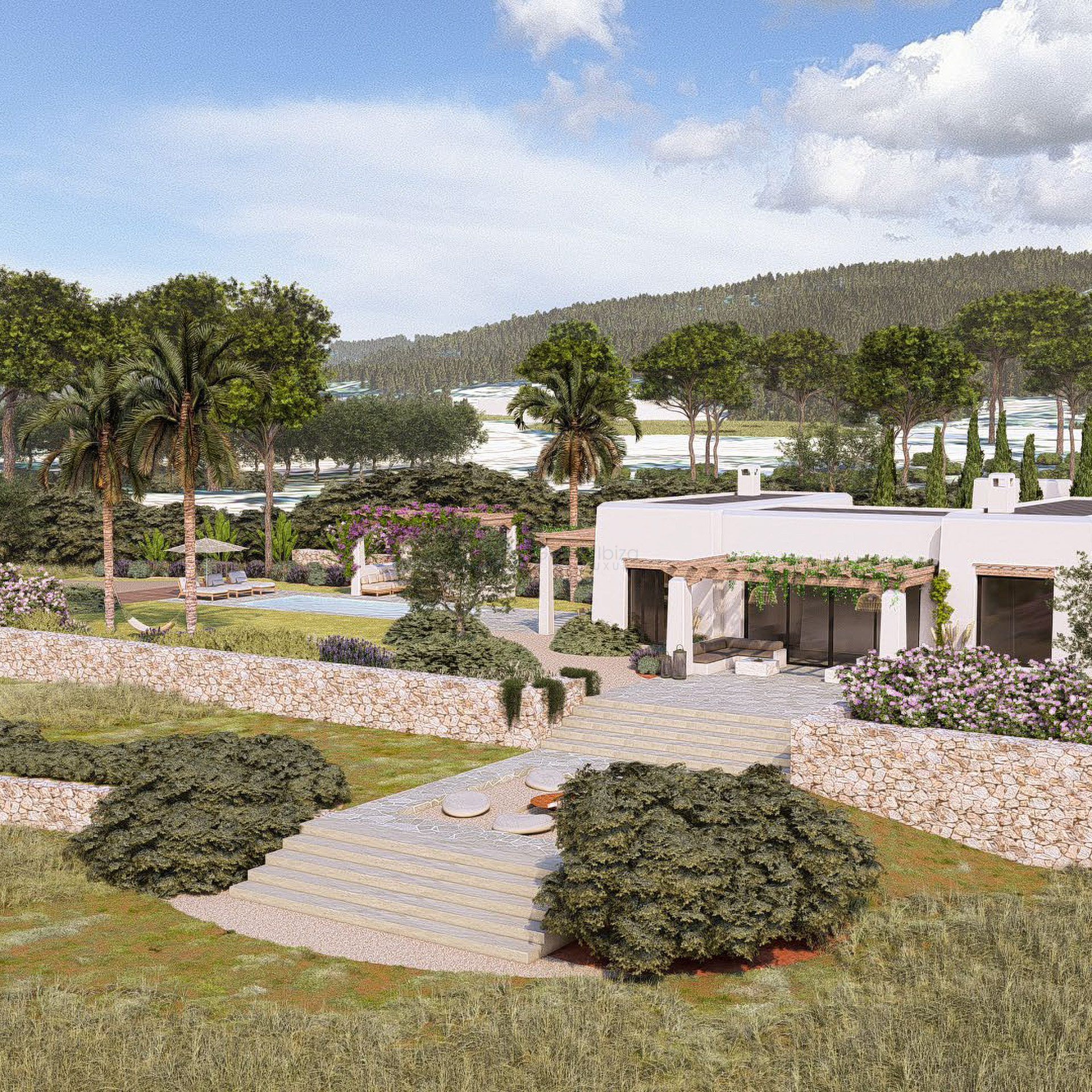 Finca Amara is built on centuries-old Ibiza “bancales” terraces, carefully handcrafted to shape the land, now forming a refined and meaningful setting for the villa. These natural plateaus are seamlessly integrated into the design, giving each part of the property its own character while maintaining a strong connection to the island’s heritage. The garden can still be customized to personal taste, and a private wooded area adds further depth and seclusion. Living here means being connected to a landscape shaped by generations, where history and nature blend effortlessly into everyday life.