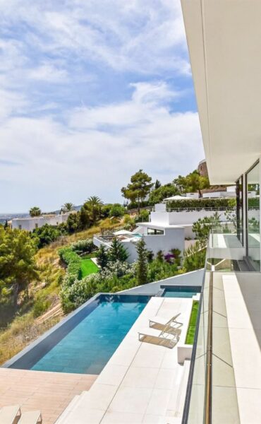 From the moment you arrive at this stunning property, the first thing that captivates you is the sweeping panoramic views of Ibiza’s natural beauty, the shimmering sea, and the picturesque island of Formentera. Once you take in the scenery, the villa’s impeccable design and high-end finishes become just as impressive.