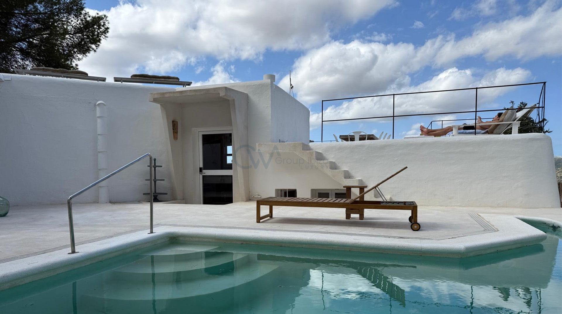 A highlight of the property is the rooftop terrace, offering spectacular panoramic views of Formentera, Dalt Vila, and the sea — an ideal spot for sunset moments or outdoor entertaining. The pool area invites relaxation in complete privacy, as it is fully shielded from view.