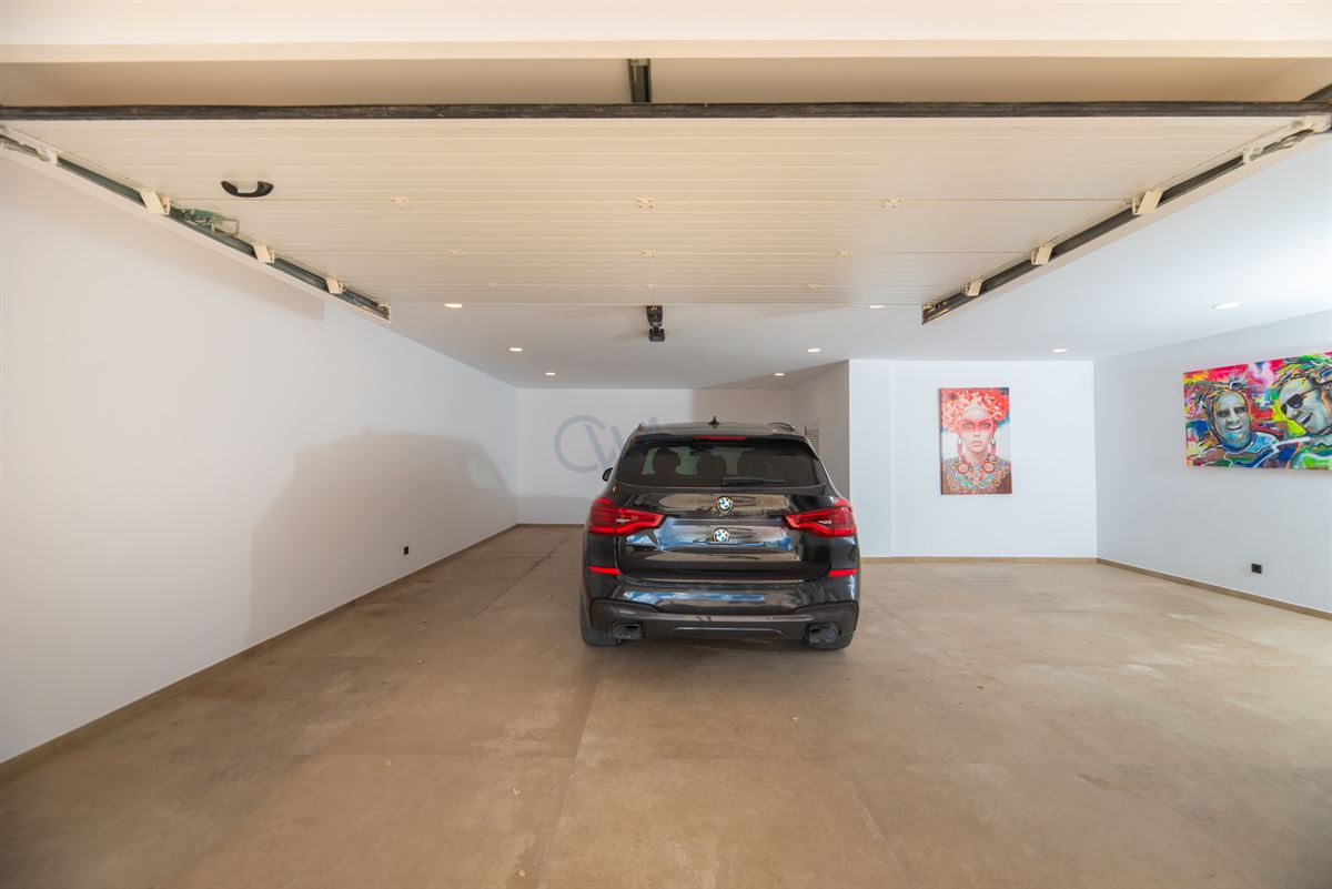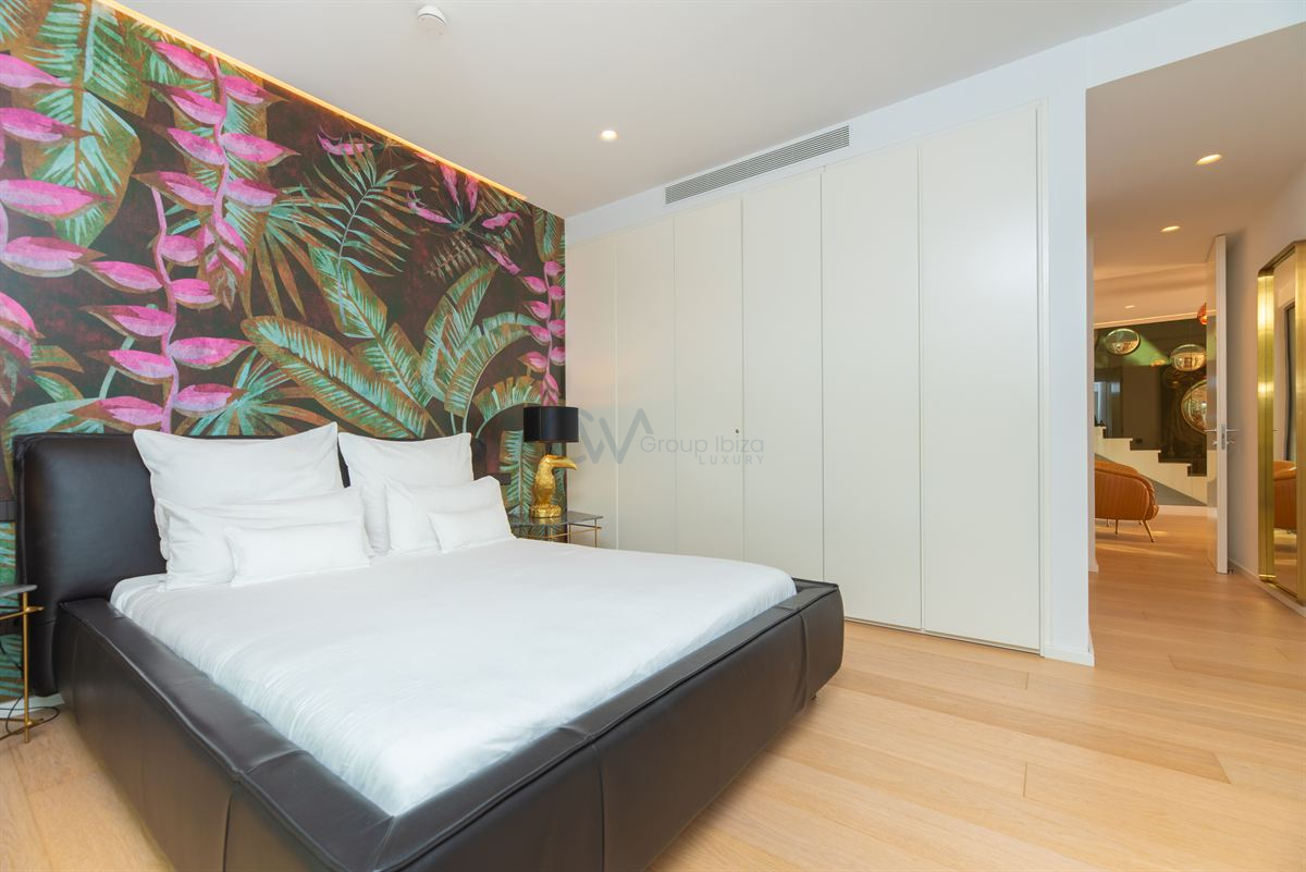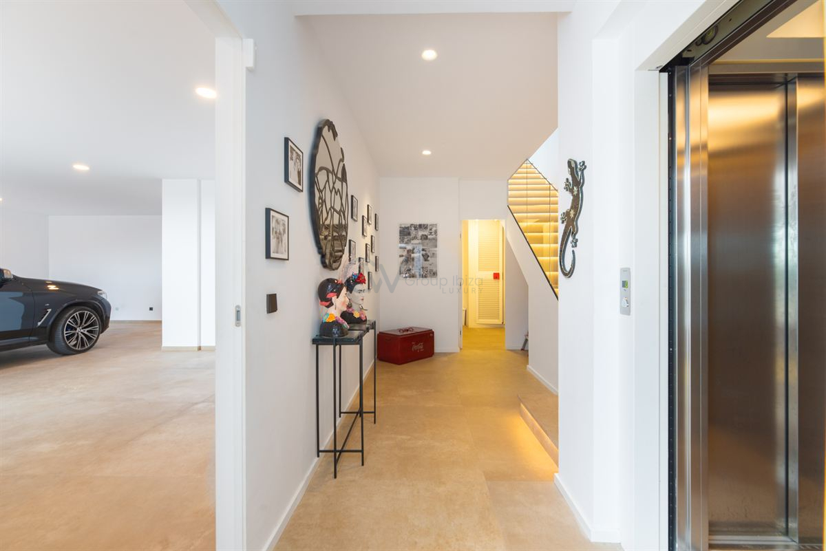 Outside, the villa offers beautifully designed spaces for relaxation and leisure. A heated infinity pool with luxury sun loungers forms the centerpiece, surrounded by multiple terraces, a covered lounge area, and an elegant outdoor dining space. The Mediterranean garden adds privacy and a natural atmosphere, while a bright winter garden provides additional space for dining and children’s activities. A large garage with capacity for five to six cars completes this exceptional property in one of Ibiza’s most exclusive locations.
