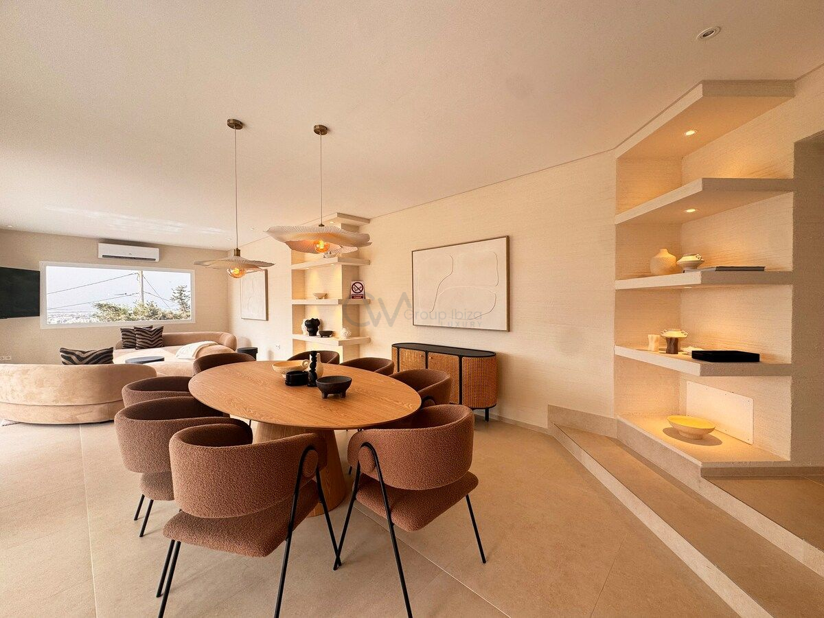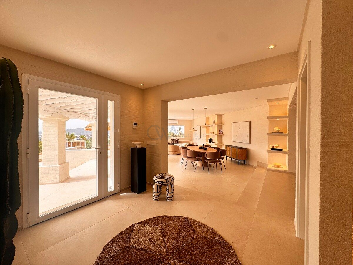 Vila, išsidėsčiusi per tris aukštus, iš kelių apžvalgos taškų atsiveria nepertraukiami Dalt Vila, Salinas ir Formentera vaizdai. Išplanavimas sukurtas taip, kad būtų kuo daugiau natūralios šviesos ir aplinkinių peizažų, užtikrinant nuolatinį ryšį su Ibizos kraštovaizdžiu. Erdvūs interjerai ir atviros gyvenamosios zonos sukuria atpalaiduojančią ir jaukią atmosferą visame pastate.