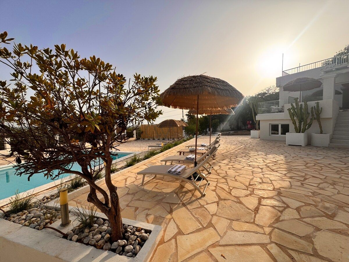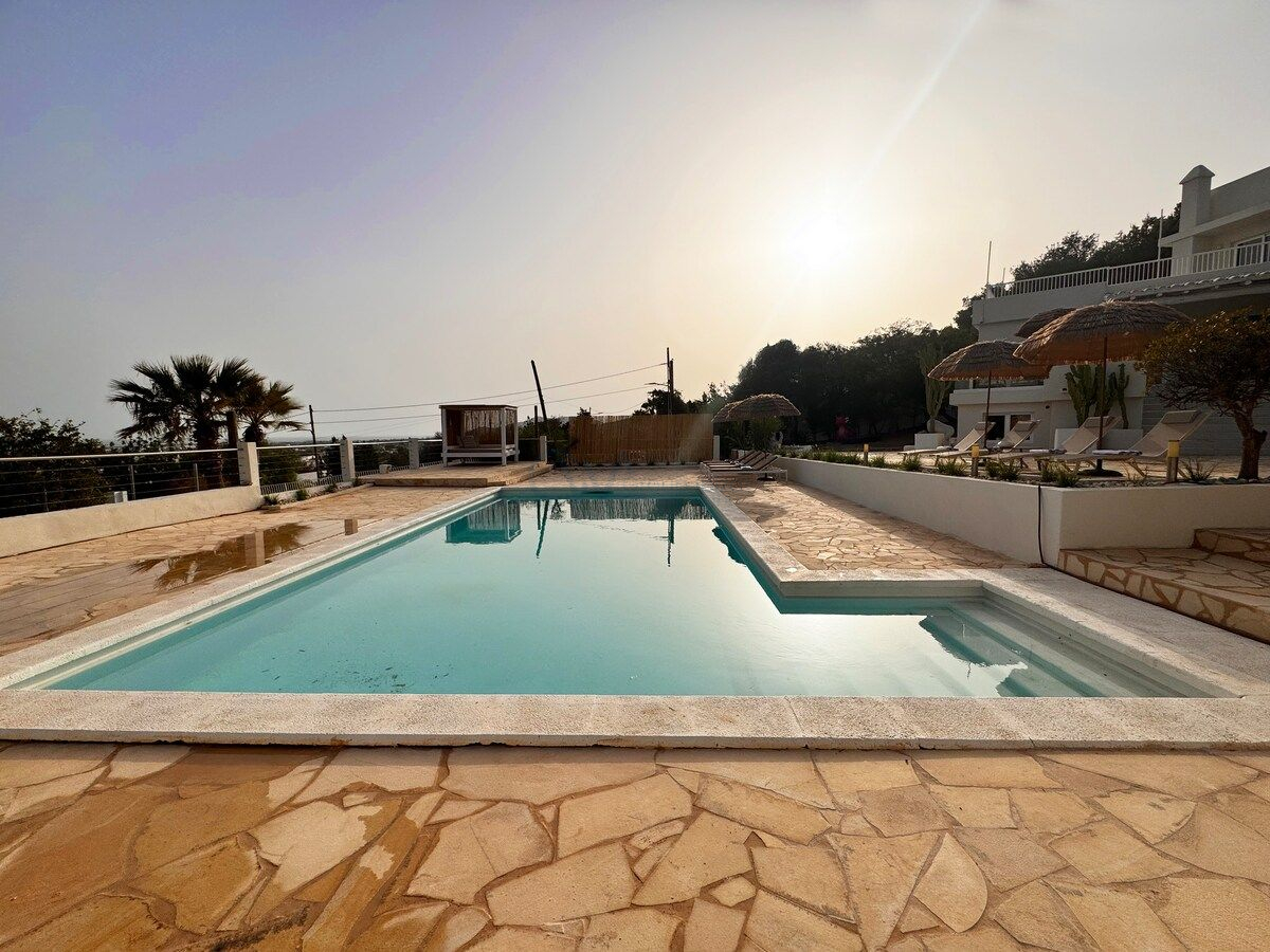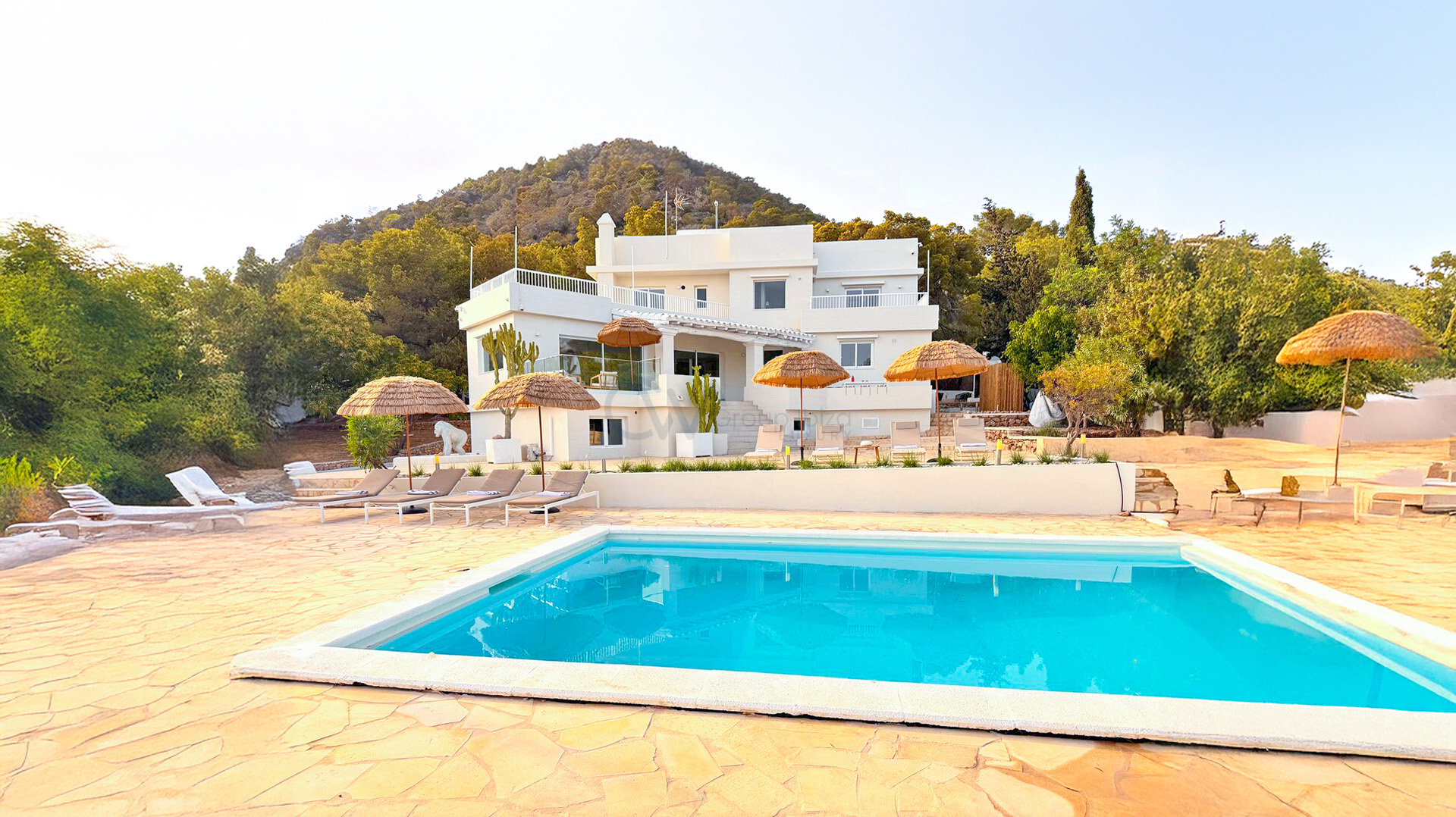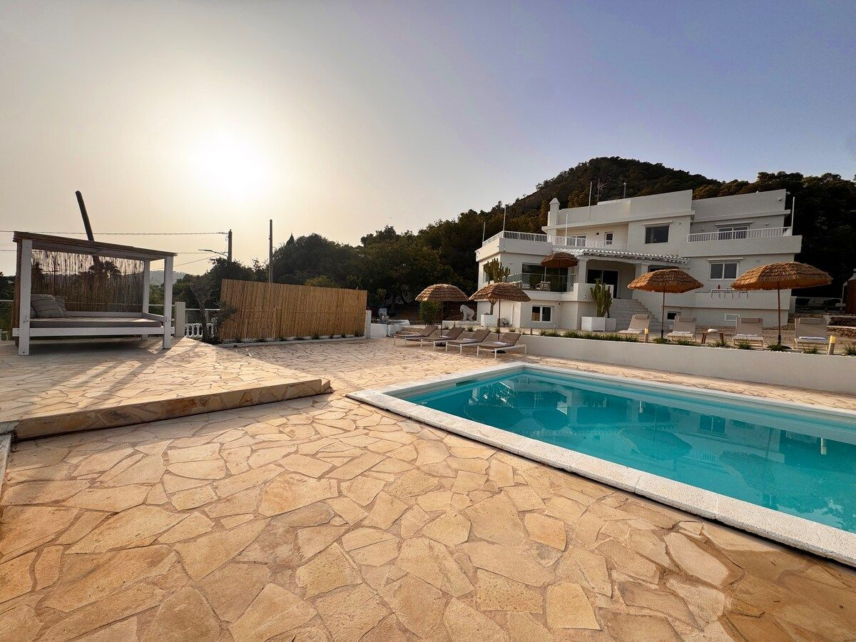 Įsikūrusi ant kalno šlaito, ši išskirtinė vila siūlo kvapą gniaužiančius saulėtekių vaizdus ir plačias Viduržemio jūros panoramas, sukurdama tikrai unikalią aplinką prabangiam poilsiui. Puiki vieta užtikrina puikų patogumą: Ibizos oro uostas ir Ibizos miestas yra vos už aštuonių minučių kelio, o artimiausias paplūdimys – vos už penkių minučių kelio automobiliu. Vila turi galiojantį nuomos leidimą iki 12 svečių, todėl puikiai tinka privačioms ir patogioms atostogoms Ibizoje.