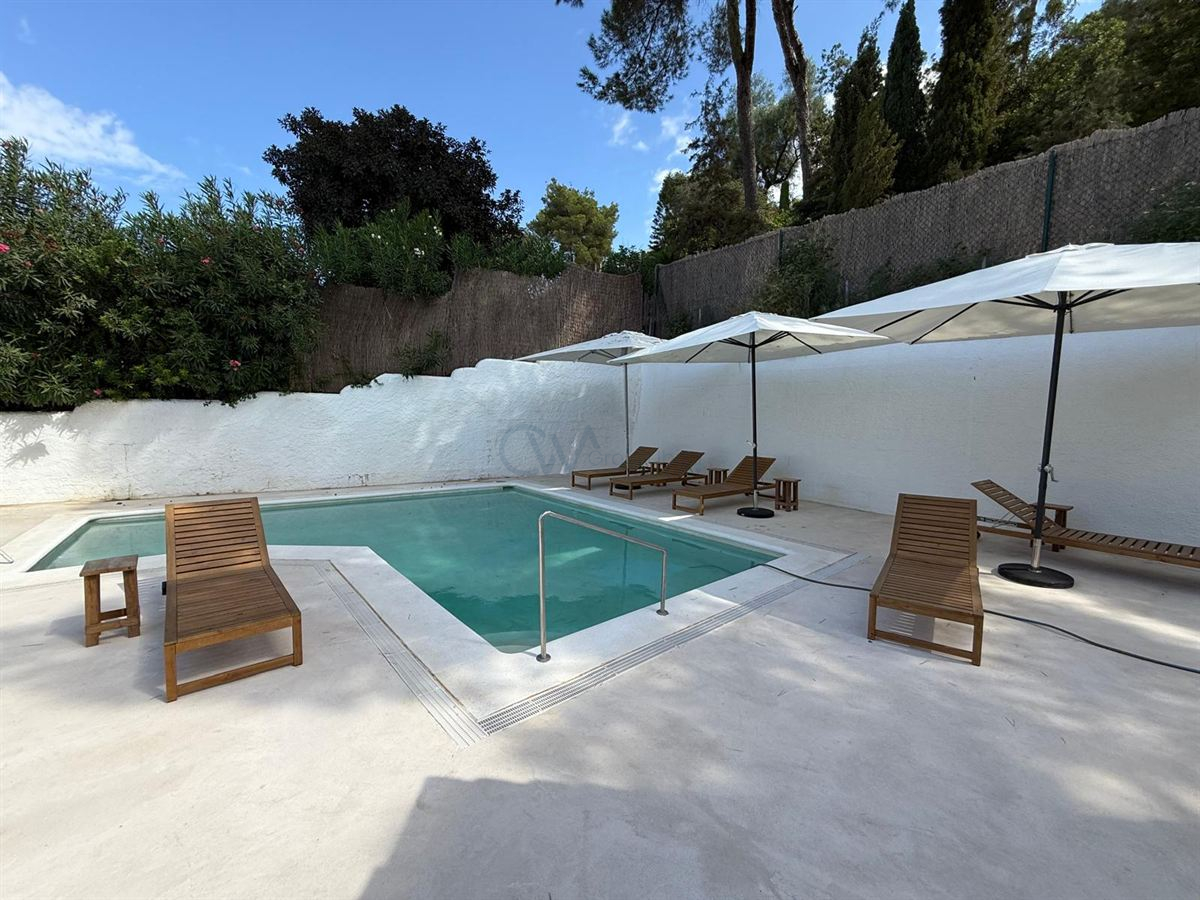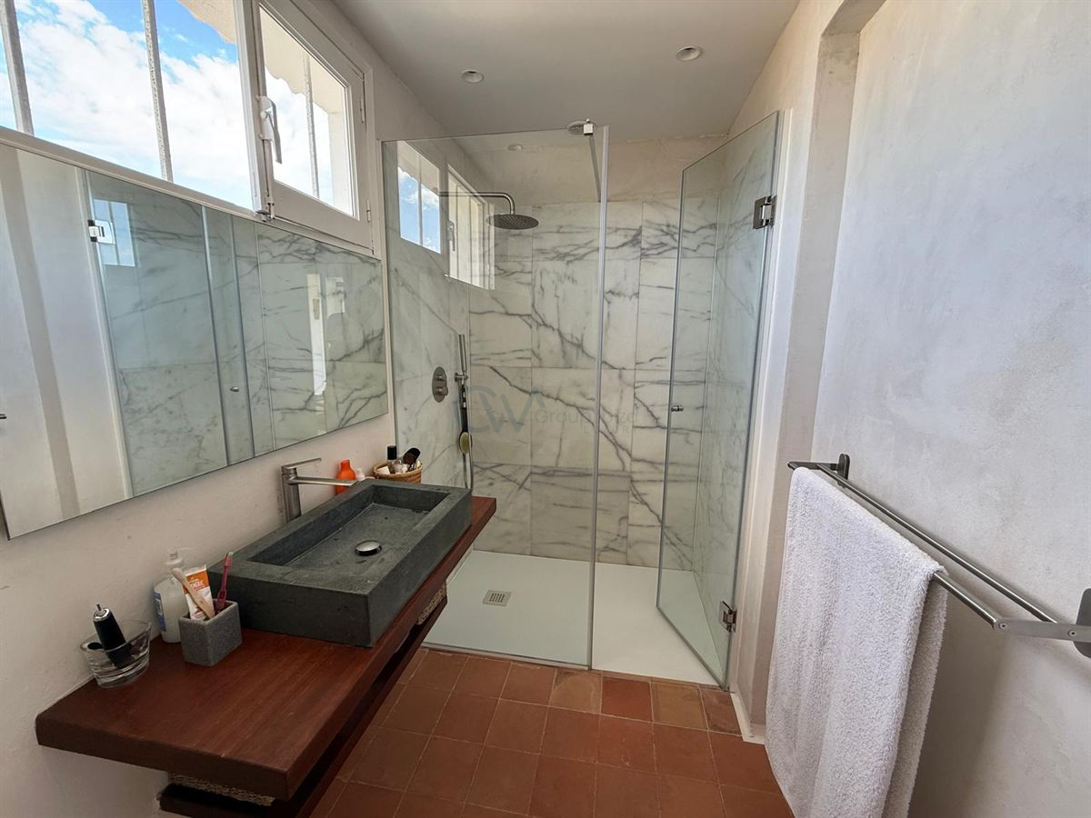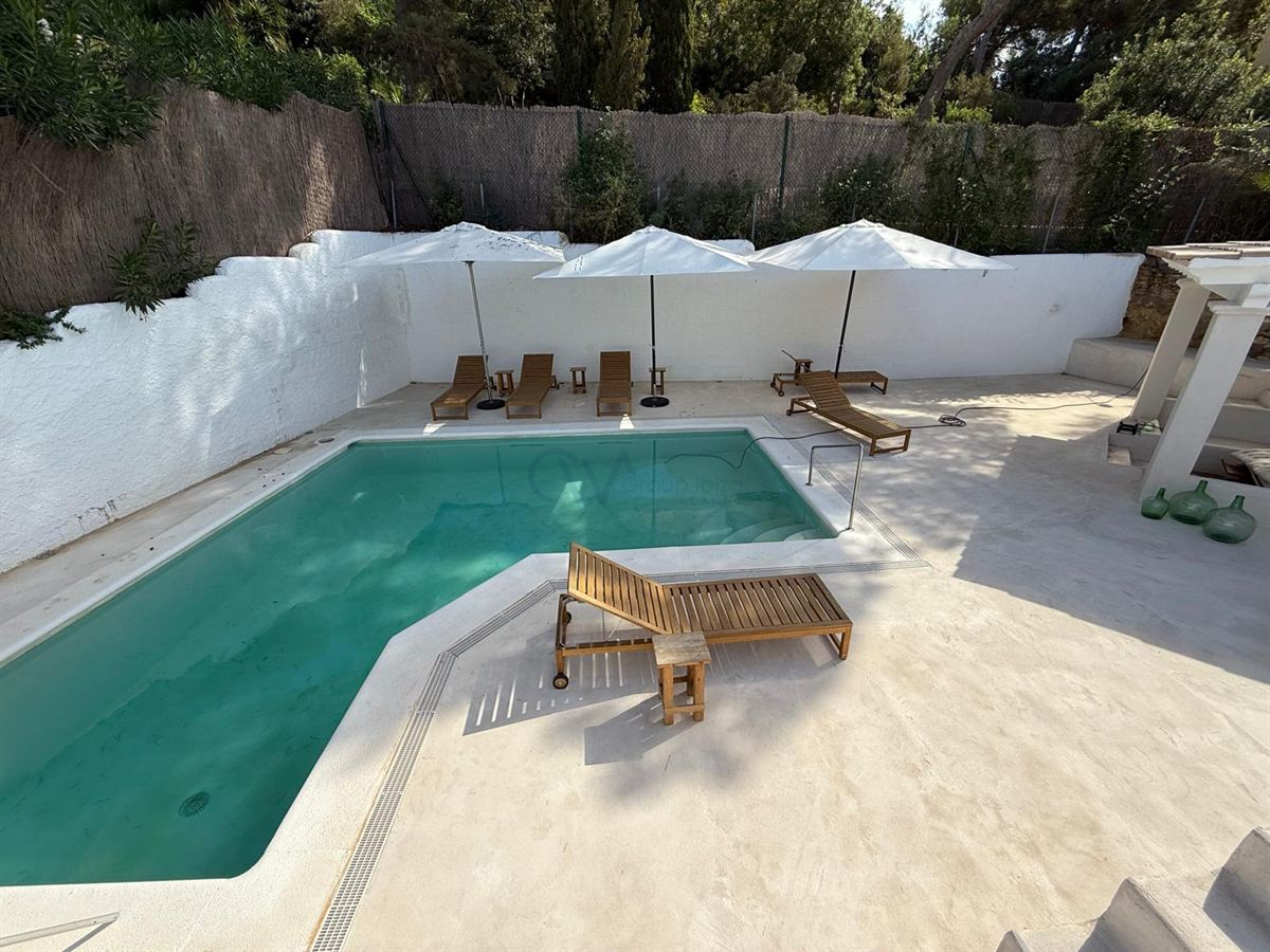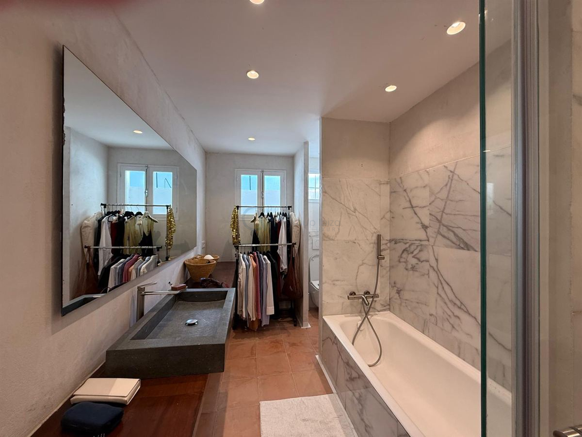 Een hoogtepunt van het pand is het dakterras, dat een spectaculair panoramisch uitzicht biedt op Formentera, Dalt Vila en de zee – een ideale plek om van de zonsondergang te genieten of om buiten te entertainen. Het zwembad nodigt uit tot ontspanning in volledige privacy, aangezien het volledig aan het zicht onttrokken is.