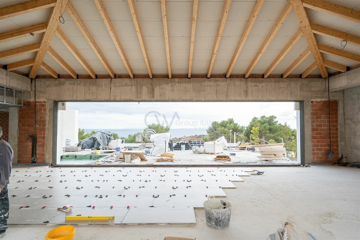 Maak kennis met Casa Imagine, een prestigieus project met twee nieuw gebouwde villa’s in de gewilde wijk Cap Martinet. Met een panoramisch uitzicht op zee tot aan Formentera, zijn deze prachtige huizen ontworpen om de perfecte balans te bieden tussen luxe en rust. De ruime woonkamer heeft een indrukwekkende plafondhoogte van 4,5 meter, geaccentueerd door verfijnde houtlook afwerkingen, wat een ambiance van verfijnde elegantie creëert.