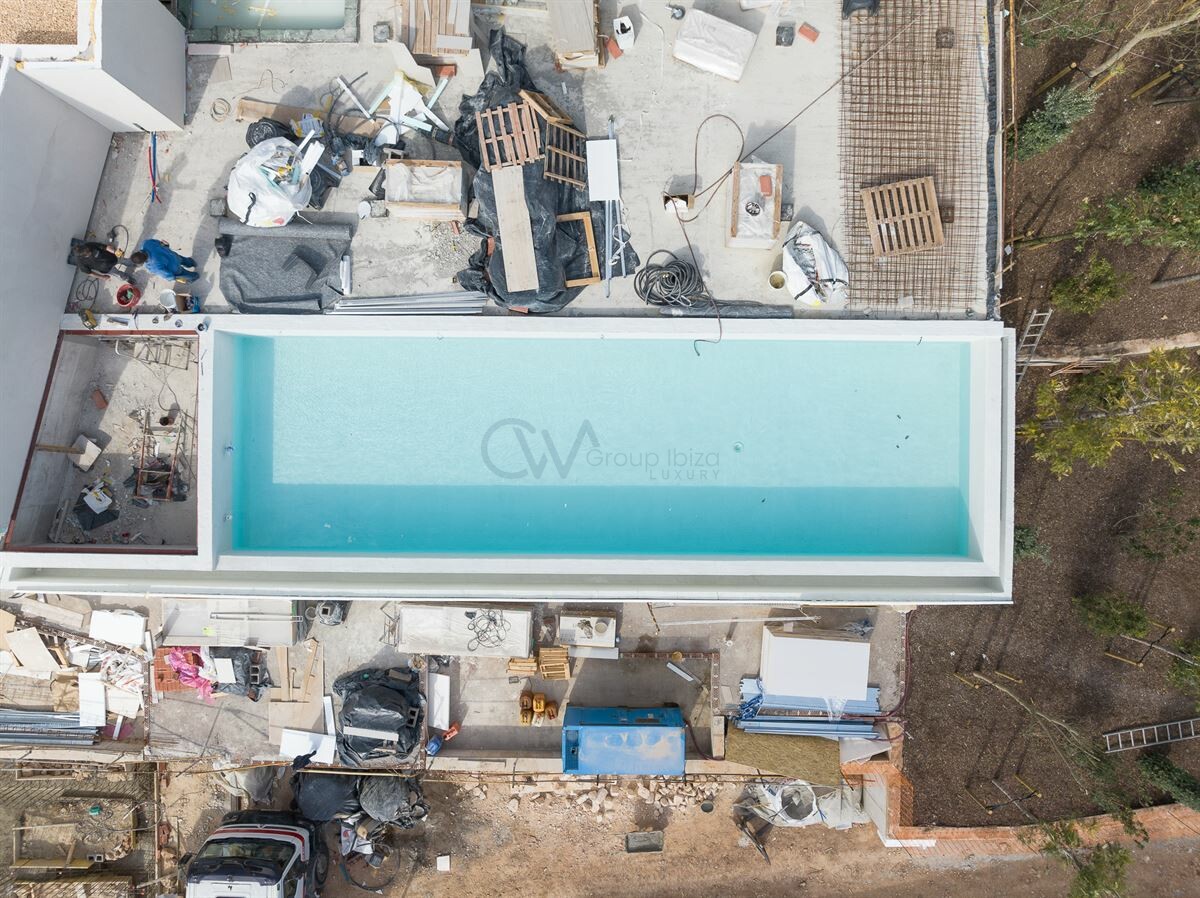 Introducing Casa Imagine, a prestigious project featuring two newly built villas in the sought-after area of Cap Martinet. With panoramic sea views extending to Formentera, these exquisite homes are designed to offer the perfect balance of luxury and tranquility. The spacious living area boasts an impressive ceiling height of 4.5 meters, accentuated by sophisticated wood-look finishes, creating an ambiance of refined elegance.